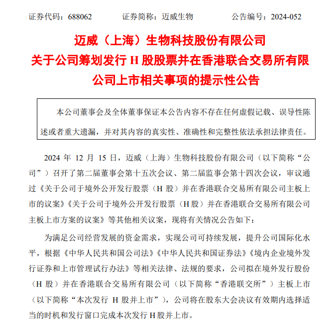 继江苏恒瑞医药股份有限公司晓谕赴港上市后九游会J9·(china)官方网站-真人游戏第一品牌,12月15日晚,革命药企迈威(上海)生物科技股份有限公司(以下简称“迈威生物”)表示了对于公司权术刊行H股股票并在香港皆集交游悉数限公司上市关系事项的辅导性公告。 ![]() 公告涌现,为满足公司规画发展的资金需求,终了公司可继续发展,提高公司国际化水平,凭证关系法律、秩序的条件,迈威生物拟在境外刊行股份(H股)并在香港皆集交游悉数限公司主板上市。公司将在鼓动大会有打算灵验期内接收合适的时机和刊行窗口完成这次刊行H股并上市。 迈威生物是一家以革命型药物和生物肖似药研发、坐褥以及销售为主营业务的药企,公司主要居品为抗体、ADC药物和重组卵白、小分子化学药。2022年,公司认真在上海证券交游所科创板上市。箝制2024年第三季度末,公司已领有15个处于临床或上市阶段的中枢品种,包括11个革命药,4个生物肖似药,隐痛肿瘤、免疫、骨疾病、眼科、血液等多个紧要疾病治愈限制。其中,已上市品种3个。 频年来,迈威生物在巨匠化方面取得显明领略。2024年前三季度,公司先后与巴西、约旦、秘鲁制药公司达成配合条约。箝制三季报表示日,公司已完成隐痛国外商场数十个国度的认真配合条约或框架条约的签署,累计里程碑金额达1428.5万好意思元。公司还将以约订价钱进行买卖化供货或赢得至高两位数销售分红。 迈威生物还晓谕,为把抓国度新时期西部大征战计谋机遇,深远东西部科技恶果弯曲升沉配合,在进军计谋支点上拓展国内和国际两个商场,公司与重庆高新工夫产业征战区不断委员会、重庆中新医药大健康私募股权投资基金合资企业(有限合资)缔结《迈威生物骨健康革命药技俩合同》,共同投资征战“迈威生物骨健康革命药技俩”。该技俩计较总投资为20亿元。 箝制现在,迈威生物正与关系中介机构就这次刊行H股并上市的关系职责进行询查,并拟遴聘安永管帐师事务所行为这次H股刊行及上市审计机构。 本年10月份,香港证监会与香港联交所发布皆集声明,晓谕将优化新上市苦求审批经由时期表,并十分建议加速合经验A股公司审批经由,以进一步提高香港行为区内颠倒的国际新股集资商场的诱骗力。在孔庆勋看来,这也简略在短时期内满足药企融资需求。 有业内东谈主士评价:“A股上市药企权术赴港上市,一方面简略赢得国际资金的爱护,便于在国外进行科研、商场等方面的参加;另一方面,这对公司品牌的国际化有一定匡助。” “国内革命药企拟赴港上市对于国际资金而言仍是比拟有诱骗力的,便于国际资金更平直地参与投资。革命药企赴港上市也不单是是为了融资,也为了获取一个国际化的成本平台,更成心于革命药企的国际化计谋落地扩充。” 免责声明:]article_adlist-->著述本色仅供参考,不组成投资建议。投资者据此操作,风险自担, 对于对文中叙述、不雅点判断保持中立,不合所包含本色的准确性、可靠性或竣工性提供任何昭示或示意的保证。请读者仅作参考,并请自行承担沿途职守。本公众号发布的各样著述重在共享,如有侵权请琢磨咱们,咱们将会删除。 ![]() I-RNA 小核酸 2025 展位火热预定中! 扫码立即参谋 电话:13816031174 (同微信) 接济神色包括但不仅限于演讲席位、会场展位、会刊彩页、晚宴接济、会议用品宣传等。 ]article_adlist-->点击此处“阅读全文”参谋更多!]article_adlist-->(转自:务实药社)九游会J9·(china)官方网站-真人游戏第一品牌 ![]() |