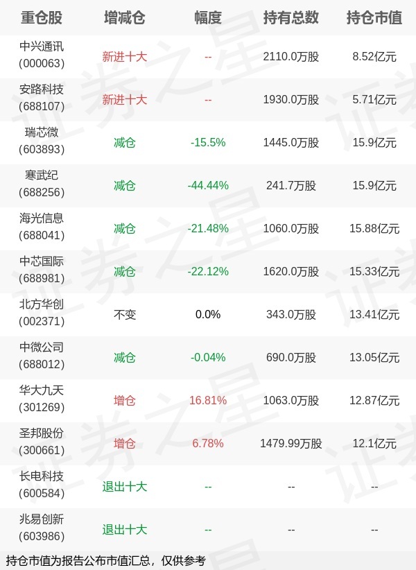 证券之星音书,1月21日星河基金旗下郑巍山处理的星河革命成长搀杂型基金公布年报,近1年净值增长率62.78%。与上一季度比较,该基金前十大重仓股新增中兴通信官方,安路科技;其中瑞芯微捏仓占比9.79%,为该基金第一大重仓股;长电科技,兆易革命等退出前十大重仓股;扎眼数据如下: